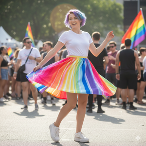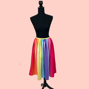 Our best selling Gloria Skirt in Rainbow Stripe. Cute, Fun and one of a kind!