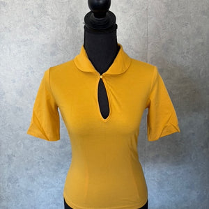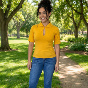 Our Keynote Blouse is a vintage-inspired staple that blends timeless elegance with modern comfort. Featuring a flattering keyhole neckline, a classic Peter Pan collar, and half sleeves, this blouse exudes retro sophistication. Available in a variety of colors and fabrics, including stretchy velvet and a cotton-spandex mix, the Keynote Blouse is as versatile as it is stylish. Perfect for pairing with high-waisted skirts or trousers, this top transitions effortlessly from day to night. Whether you're dressing up for a special occasion or adding a touch of vintage flair to your everyday look, the Keynote Blouse is a must-have for any retro wardrobe.