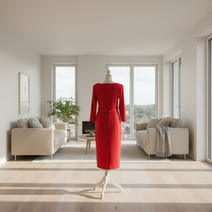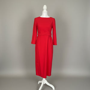 Vicki Pencil Dress in Crimson - Lightweight fabric, self belt- perfect for the Holidays!
