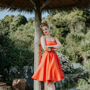 Peggy Fit & Flare Midi! Swing and jive the night away in the Peggy full circle! This classic 1950's inspired party dress is perfect for dressing up or dressing down. This cute fit and flare midi length silhouette is a dress you will get plenty of wear, not to mention compliments. Pretend you’re Ginger Rogers and go out there and tear up that dance floor, all you boppers and Lindy hoppers out there.