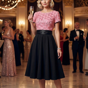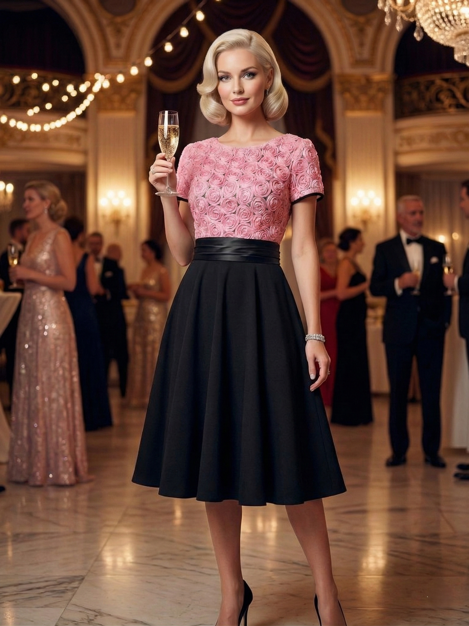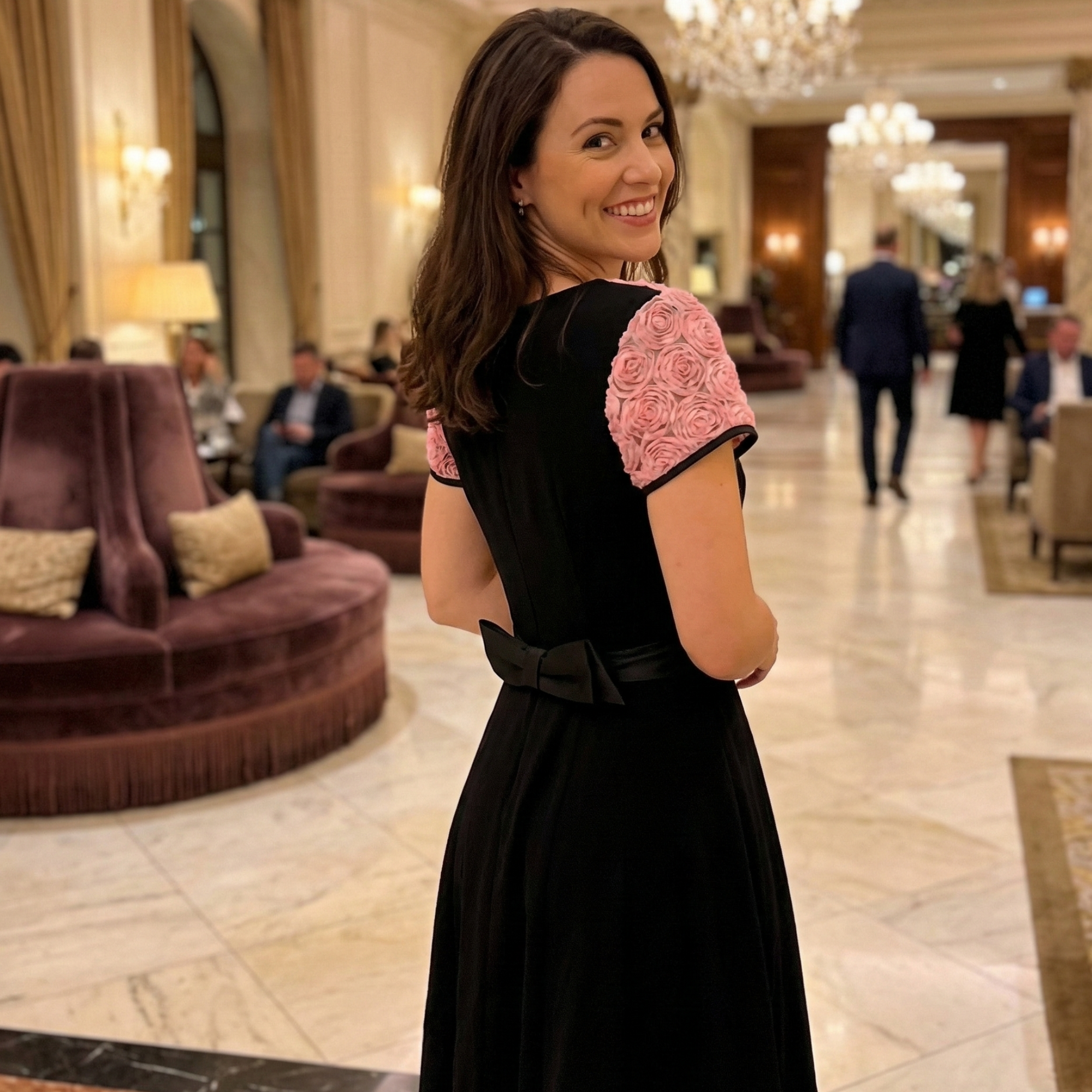 Gorgeous black circle dress with a pink roses bodice. Never made sample.