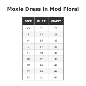 The flattering A-line cut ensures this dress looks fabulous on every body type, embracing the timeless appeal of the era. What makes it even more special? Our in-house design team crafted this unique floral pattern, guaranteeing a one-of-a-kind fashion statement. Step into the past with a dash of modern flair – shop the Moxie Shift dress now and let your inner mod shine!"