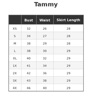 The Tammy has a center back zipper and is fully lined with side seam pockets. This style pairs well without crinolines for that extra playful 1950’s silhouette we all love.