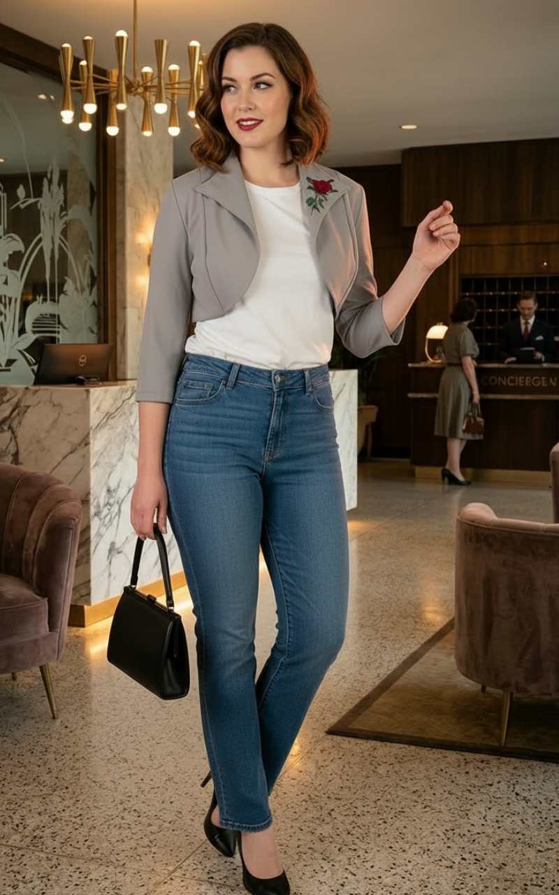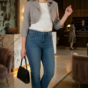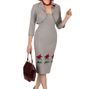 Gray Bolero Jacket with embroidered rose.