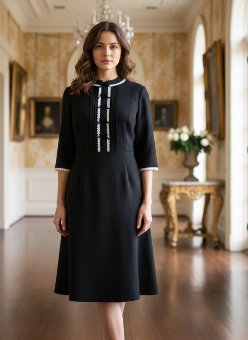 Classic black with white lace trim and bows - feminine and flirty but great for the office.